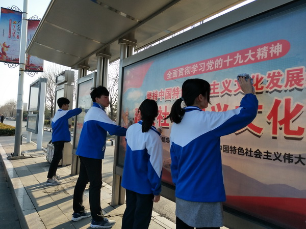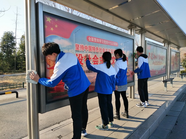 公交车站大清洁,志愿者们在行动。3月8日,由必赢73882登录网址团总支主办,学生会举办的志愿者活动在济宁医学院太白湖校区公交车站成功举办。
