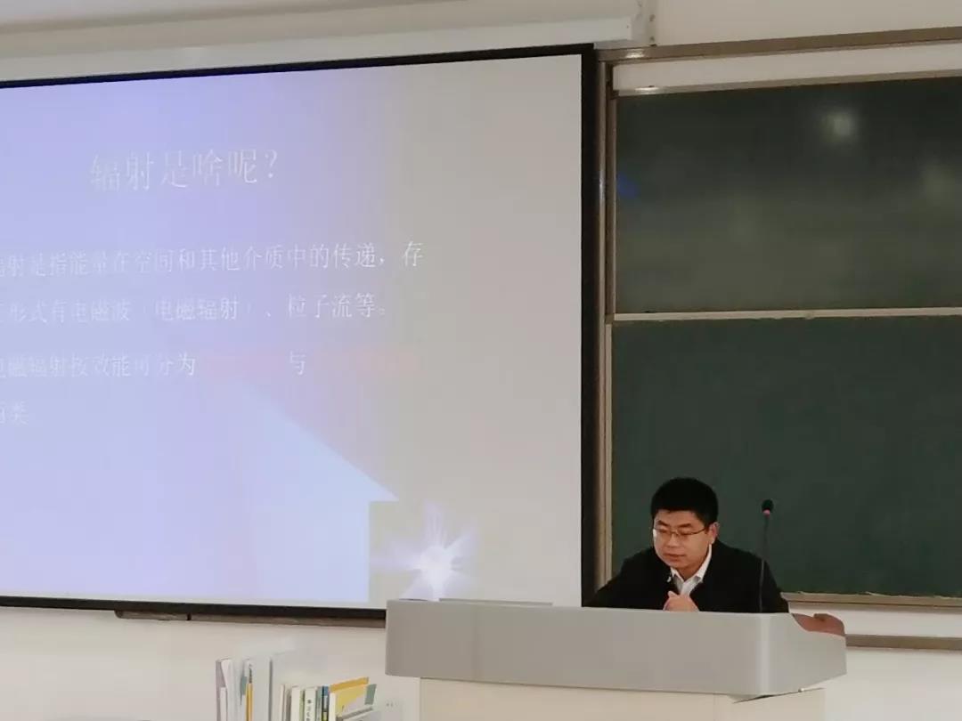 陈盟首先从科普的角度介绍了放射方面的有关知识,让大家对放射有了一个基本的概念和认识,通过图片展示以及身边的实例,引起同学们的兴趣,让同学们对放射及其危害有所了解。然后简单介绍了一下疾控中心放射检测方面的有关内容,包括放射设备的性能检测、放射操作室及机房的防护检测以及放射工作人员的防护检测等。