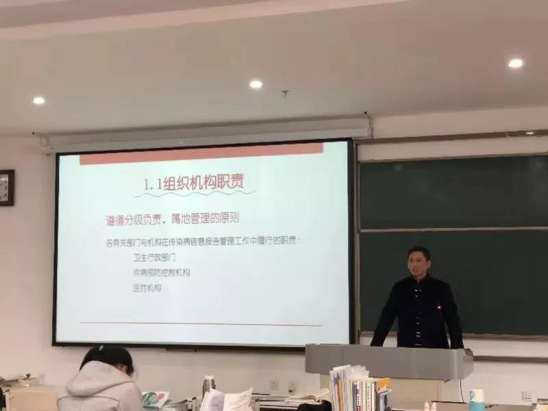 2018年11月10日,济宁市疾控中心办公室主任刘伟(我院1998级预防医学专业毕业生)、公共卫生科科长李荣华(我院1999级预防医学专业毕业生)应邀来到我院,为我院师生开展了传染病防治法律制度与监督、公共卫生监督与食品安全事件处理专题讲座。