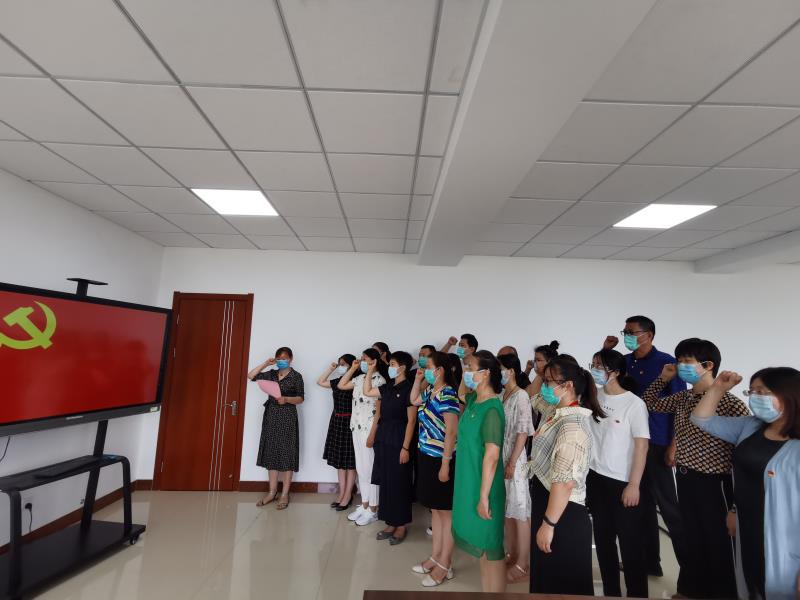 首先全体教工党员佩戴党徽,面向国旗,庄严宣誓,通过重温入党誓词,全体党员再一次接受了思想上的洗礼,更加体会到作为一名共产党员的责任感和使命感;接着学校党委委员、副院长赵敏同志为党员代表发放入党纪念日卡片,为六、七月入党的党员集体过了一次政治生日;青年教工党员崔平同志代表全体党员进行了发言,表示要立足本职岗位扎实工作、担当作为,以优异的工作成绩为党的生日献礼。