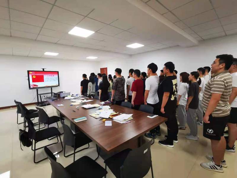 首先王峰同志宣读入党宣誓人员名单,接着全体人员起立,在庄严肃穆的氛围中奏唱《国际歌》,带领13名预备党员面向党旗庄严宣誓,坚定的目光彰显出他们对党的忠诚和对初心的坚守。预备党员面对党旗进行入党宣誓,是发展党员工作必经程序;这是党组织对预备党员入党后进行的一次庄严的、生动实际的党的观念的教育,也是预备党员进行自我教育的好形式,可以使他们时刻用誓言来激励自己,终身牢记自己的誓言,并努力付诸实践。支部全体党员重温了入党誓词。