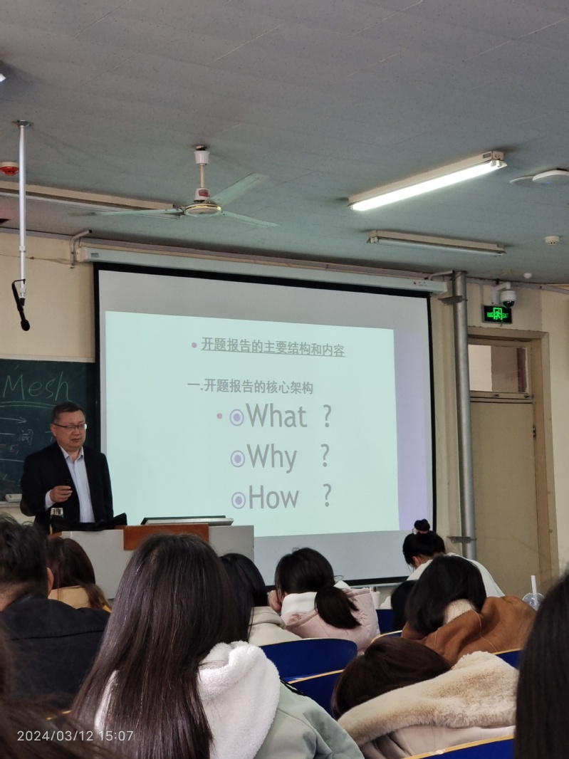 张凯的报告题目为《实验室安全与操作》《如何写开题报告》,王朋的报告题目为《文献检索与毕业论文写作》。两位专家结合自身的工作经历,实验室操作与安全、如何写开题报告、如何进行信息检索等,分享了他们的带教经验和研究心得,并现场解答了同学们的提问,为毕业生顺利完成专题实习提供了有针对性的、具有较强实用性的指导。