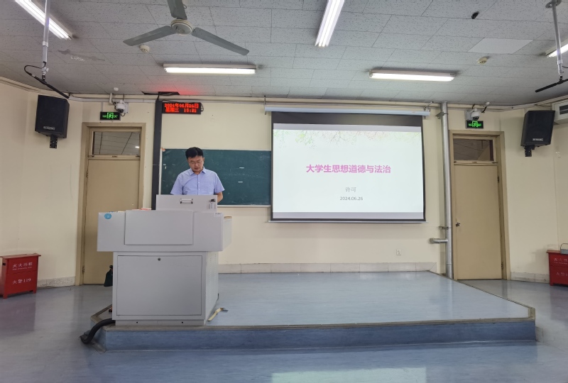 为了帮助学生进一步树立正确的世界观、人生观,践行社会主义核心价值观,弘扬中华民族传统美德,不断提升个人思想道德修养水平,强化法治意识和法治观念,6月26日,我院开展大学生思想道德与法治教育活动,必赢73882登录网址办公室主任、法治工作联络员许可为学生讲授《大学生思想道德与法治》思政课。