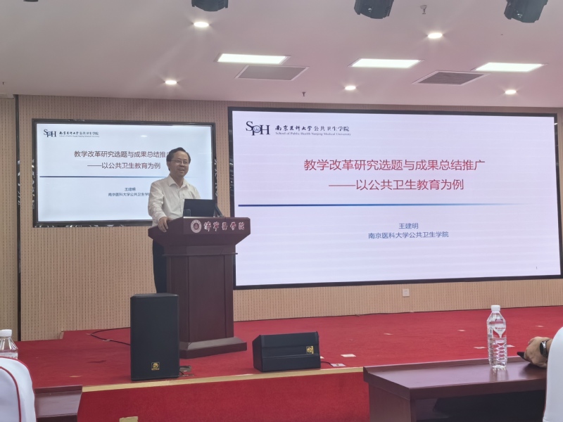 王建明作了题为“教学改革研究选题与成果总结推广——以公共卫生教育为例”的主题报告。王教授以本单位获得国家教学成果一等奖的申报历程为例,系统介绍了教学成果奖的申报程序、注意事项,教学成果的内涵、教学成果奖的特点,以及教学成果奖相关材料的组织,内涵丰富、讲解清晰,不仅为我校申报教学成果奖提供了学习和借鉴的经验,也对我们进行教育教学改革、教学团队组建、公共卫生人才培养质量提升,从而助推学校内涵式建设有着较大的指导意义。