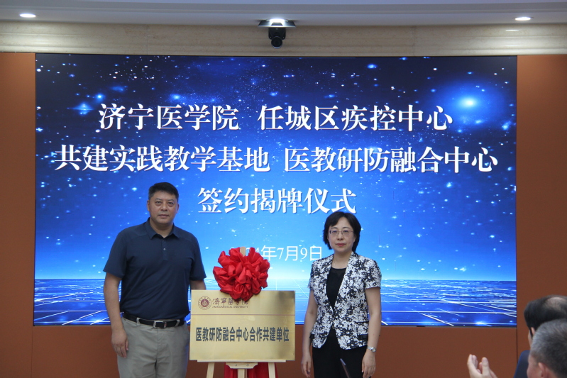 7月9日,我校与济宁市任城区疾控中心共建实践教学基地、医教研防融合中心签约揭牌仪式,在任城区疾病预防控制中心举行。学院党总支书记卫明武、院长林立,任城区卫生健康局党组副书记、疾控中心主任华茜等参加仪式。仪式由任城区疾控中心副主任张传东主持。
