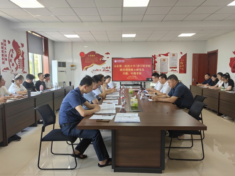 根据《研究生学位论文开题管理办法》与《硕士学位研究生中期考核实施办法》, 2024年8月29日上午,我院开展2024年与山东第一医科大学联合培养硕士研究生开题、中期考核工作。考核评审小组由5名院外专家学者组成,博士研究生导师、山东省泰山学者特聘专家、山东省寄生虫病防治研究所副所长、二级研究员公茂庆担任考核组长。学院党总支书记卫明武、院长林立出席并致欢迎辞。本次开题报告、中期考核由科研管理科负责人闫业浩博士主持。