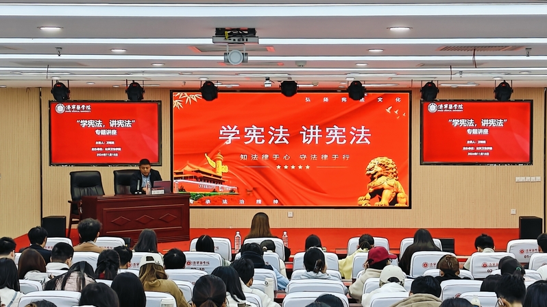 为进一步弘扬宪法精神,增强广大青年学生法治意识,11月18日,必赢73882登录网址在太白湖校区举办“学宪法,讲宪法”专题讲座。学院党总支书记卫明武作专题讲座。