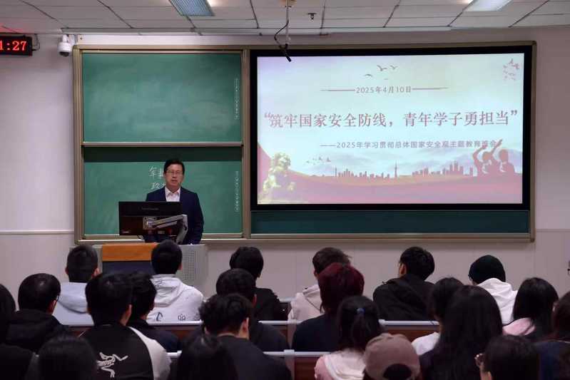 张建华深入了解班级建设、学业进展、生活状况等情况,并围绕国家安全主题与同学们进行互动交流。他围绕总体国家安全观的核心要义、当前国家安全形势的突出挑战、高校在国家安全中的特殊责任等方面,向同学们强调维护国家安全的重要性。课上,他向同学们提出殷切期望,要深刻认识国家安全的重要性,牢固树立“国家安全,人人有责”理念,切实增强维护国家安全的责任感使命感,提升防范和抵御安全风险能力。要树立远大理想,练就过硬本领,强化专业学习,提升综合能力,做有理想、敢担当、能吃苦、肯奋斗的新时代好青年,为健康中国建设作出积极贡献。要保持健康体魄,磨砺坚强意志,加强体育锻炼,塑造强健体魄,保持健康心态,为服务经济社会发展贡献青春力量。