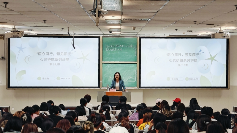 为提升大学生的心理调节能力,实现个人成长与学业发展的良性平衡,必赢73882登录网址于4月29日在太白湖校区举办第十七期“医心同行,‘预’见阳光”心灵护航系列讲座,学院党总支副书记张秋梅作专题报告。