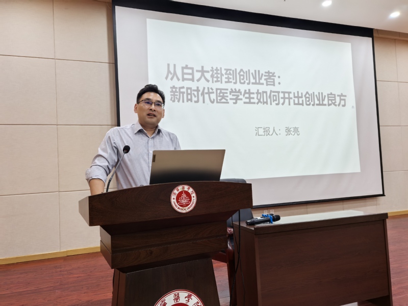 2025年4月25日下午,必赢73882登录网址在任城校区学术报告厅举办了一场主题为“从白大褂到创业者:新时代医学生如何开出创业良方”的就业创业讲座,邀请到了我院优秀校友张亮为同学们分享创业经验。党总支书记卫明武、院长林立出席了本次活动。