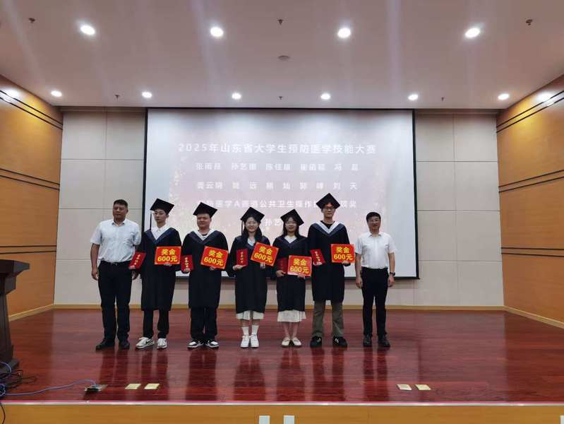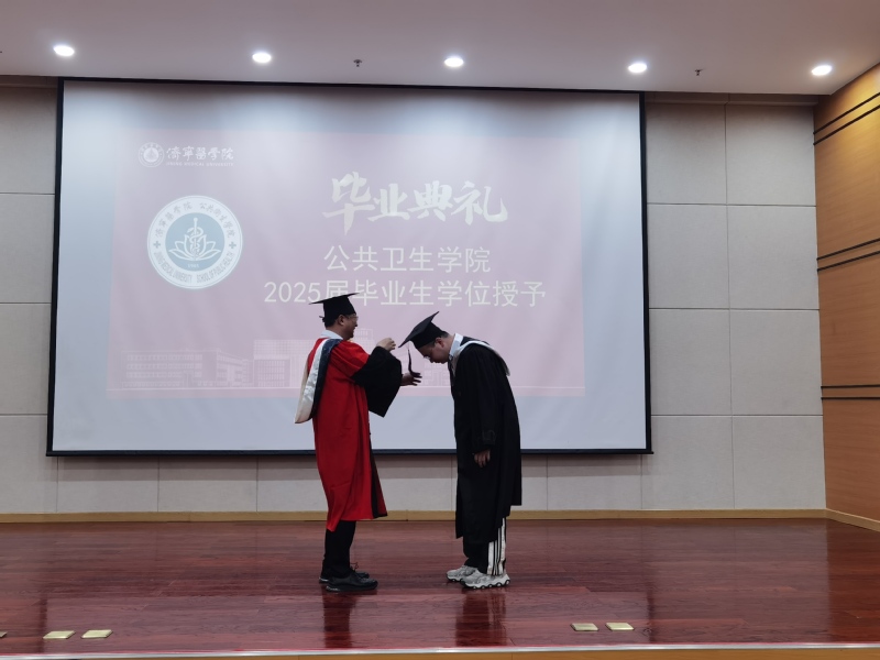 学院党总支书记卫明武依次宣读《关于2025届学生毕业的决定》、《关于表彰2025届优秀毕业生的决定》《山东省预防医学技术技能大赛表彰决定》,与会领导教师分别为毕业生代表、优秀毕业生代表、技能大赛获奖者颁发毕业证书和荣誉证书。