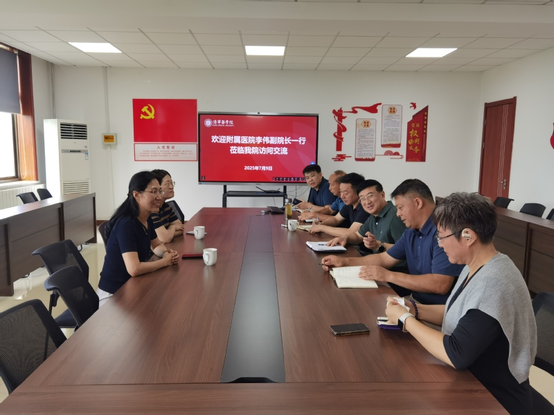 7月9日上午,附属医院副院长李伟、院感部主任孟秀娟来我院进行工作交流,探讨医防融合、校企合作等事宜,学院党总支书记卫明武、院长林立进行接洽。
