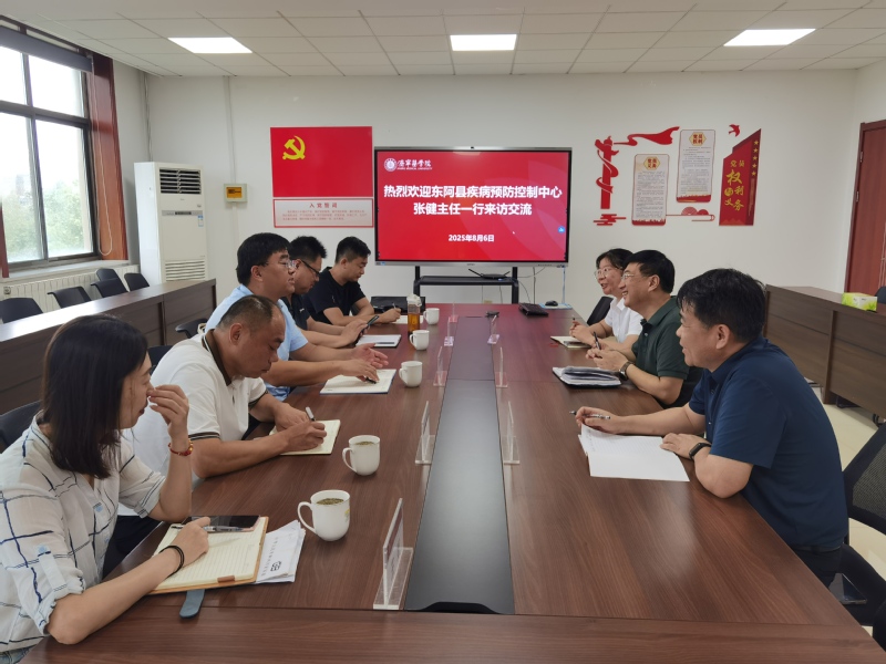 8月6日,东阿县疾病预防控制中心主任张健一行到学院座谈交流。院长林立、副院长李印龙出席活动。