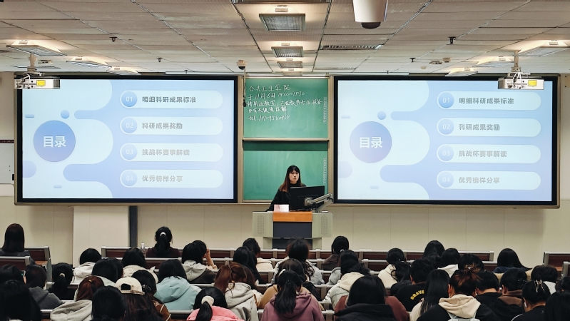 会上,韩露围绕“挑战杯”赛事的参赛流程、选题方向、作品打磨要点及评审标准等核心内容,明晰了助力学生团队高效备赛、提升作品竞争力的关键路径。同时结合往届优秀指导教师与获奖学生的实战经验,针对大学生在选题策划、团队协作、材料撰写上的常见困惑,为同学们提供了极具针对性的备赛策略与创新思维培养建议。